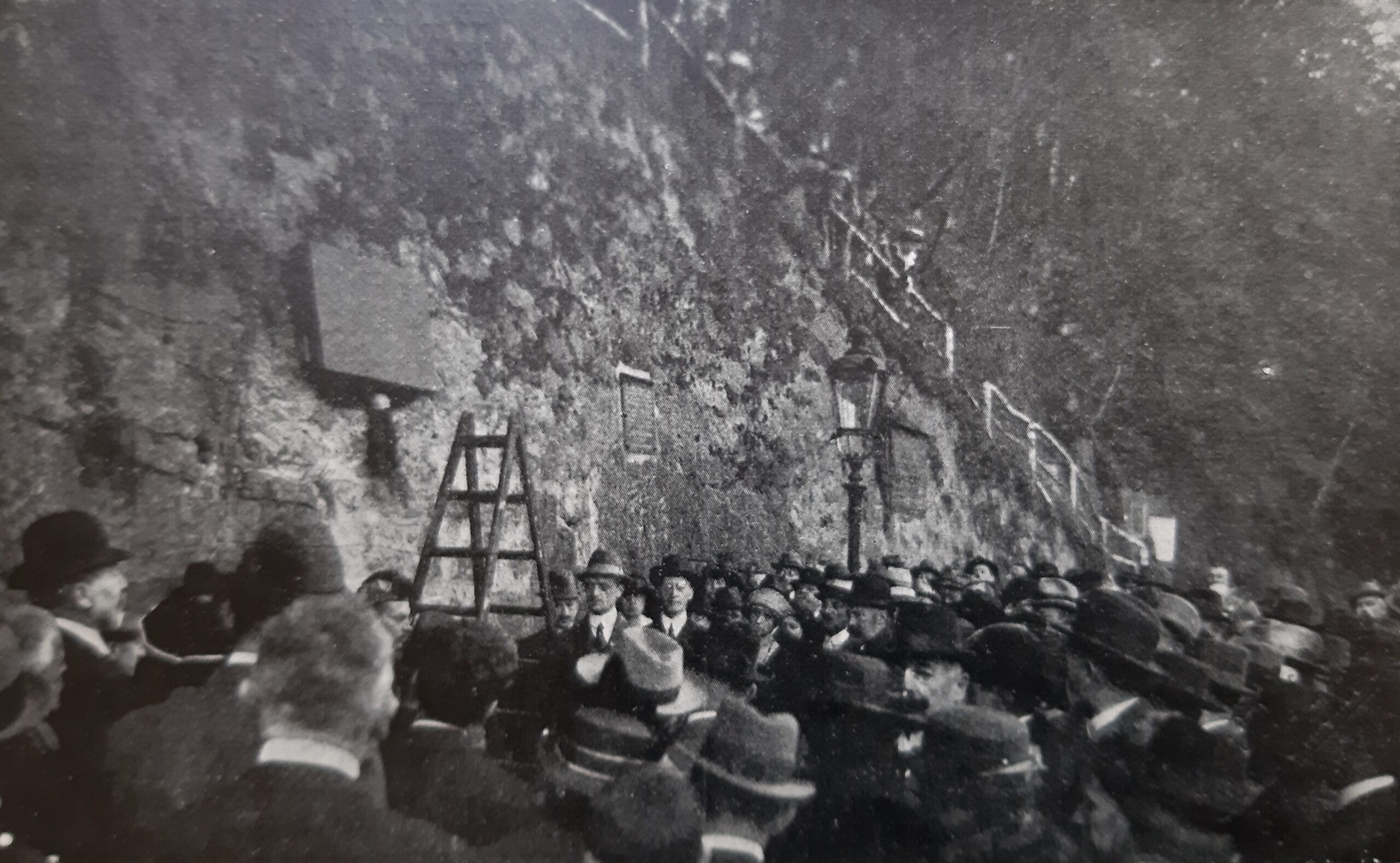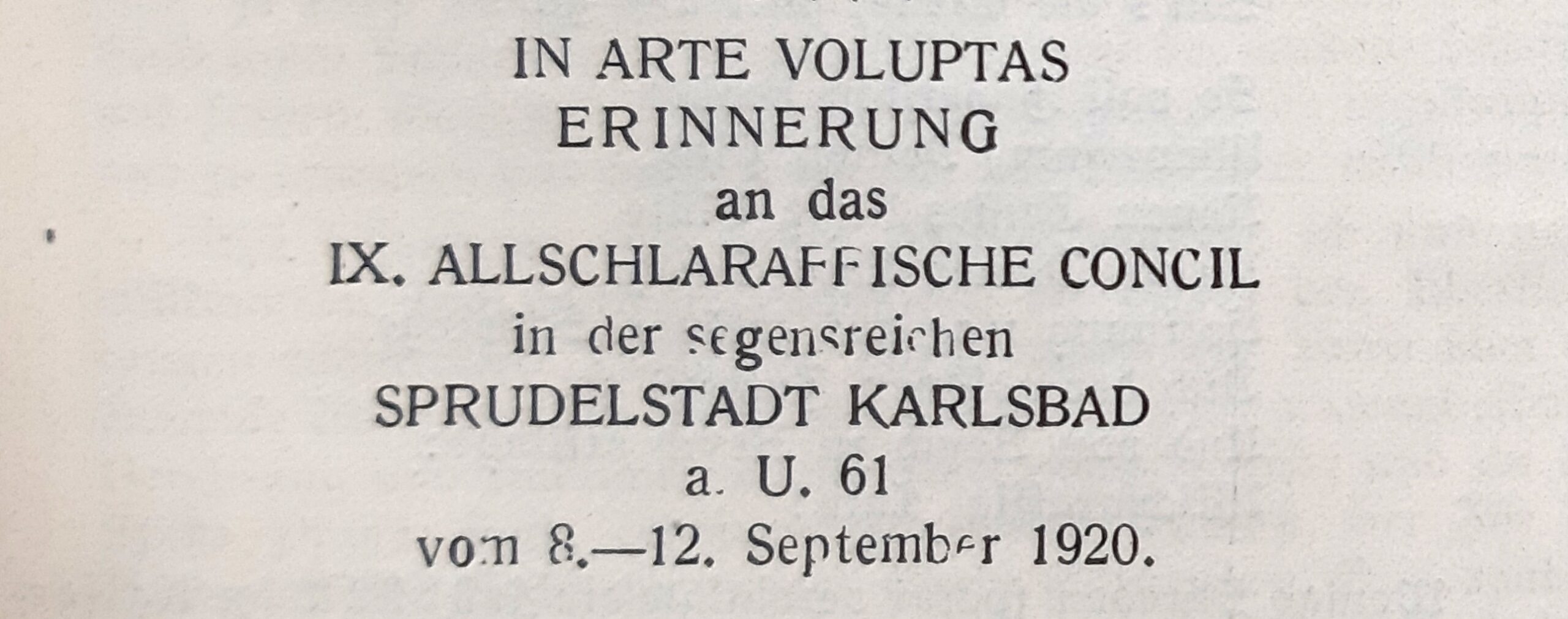 Pamětní deska upomínající na konání IX. všešlarafského koncilu v Karlových Varech: fotografie z odhalování dne 11. 9. 1920, přepis textu z pamětní desky.
